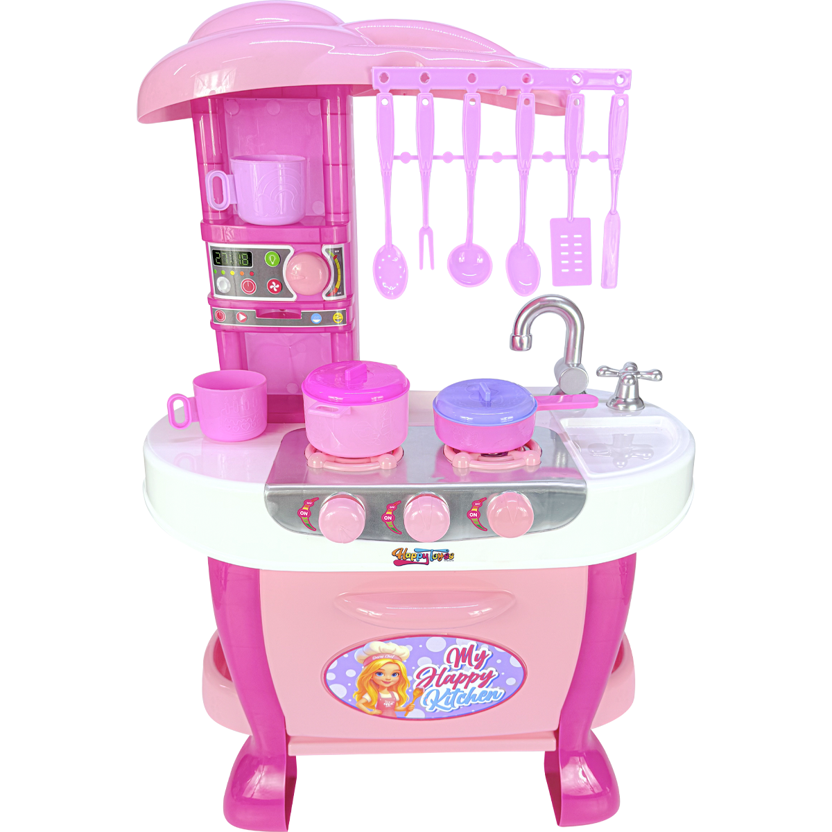 My Happy Kitchen es un atractivo set de juguete que brinda a los niños la oportunidad de divertirse recreando un verdadero ambiente de cocina. Incluye una cocinita con accesorios en colores surtidos que estimulan la imaginación y permiten a los pequeños inventar historias mientras comparten con amigos o familiares. Su diseño es llamativo y práctico pensado para ofrecer una experiencia de juego cercana a la realidad.