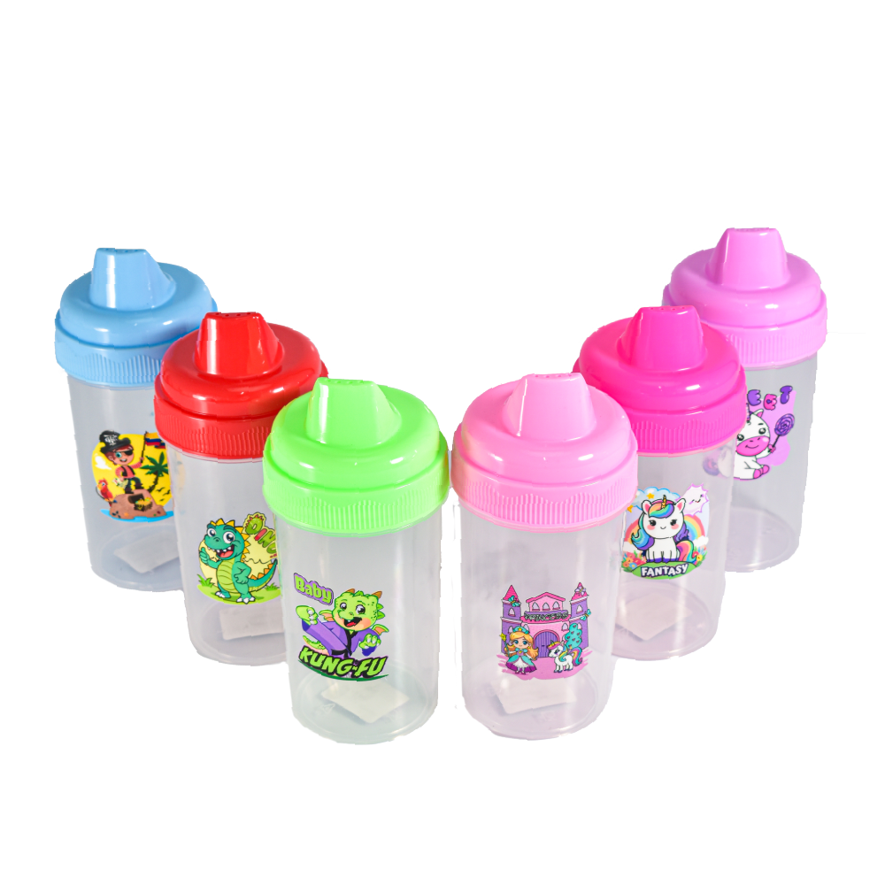 El vaso infantil GDH0045 destaca por su diseño transparente con divertidas decoraciones infantiles ideal para acompañar las comidas o meriendas de los niños. Su tapa roscada con boquilla facilita el consumo de líquidos evitando derrames y brindando seguridad.